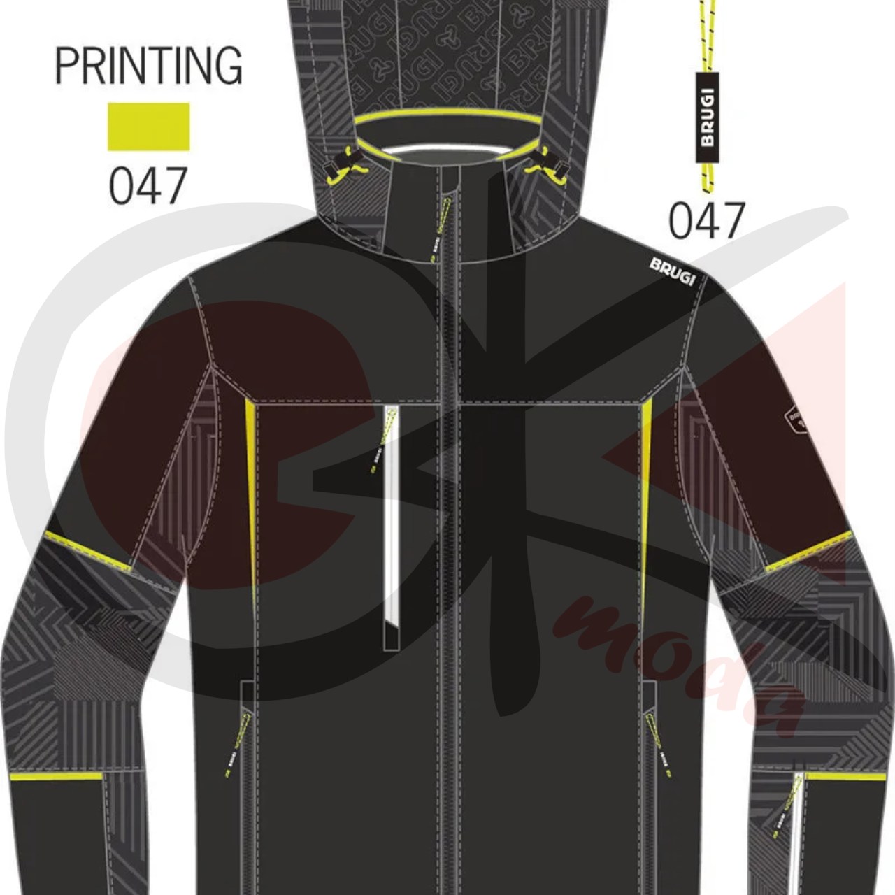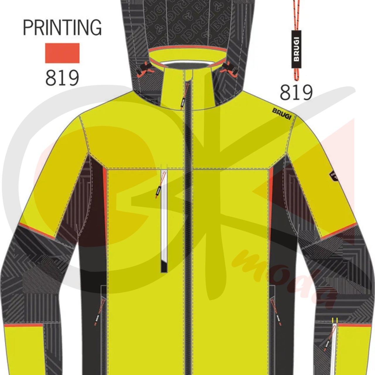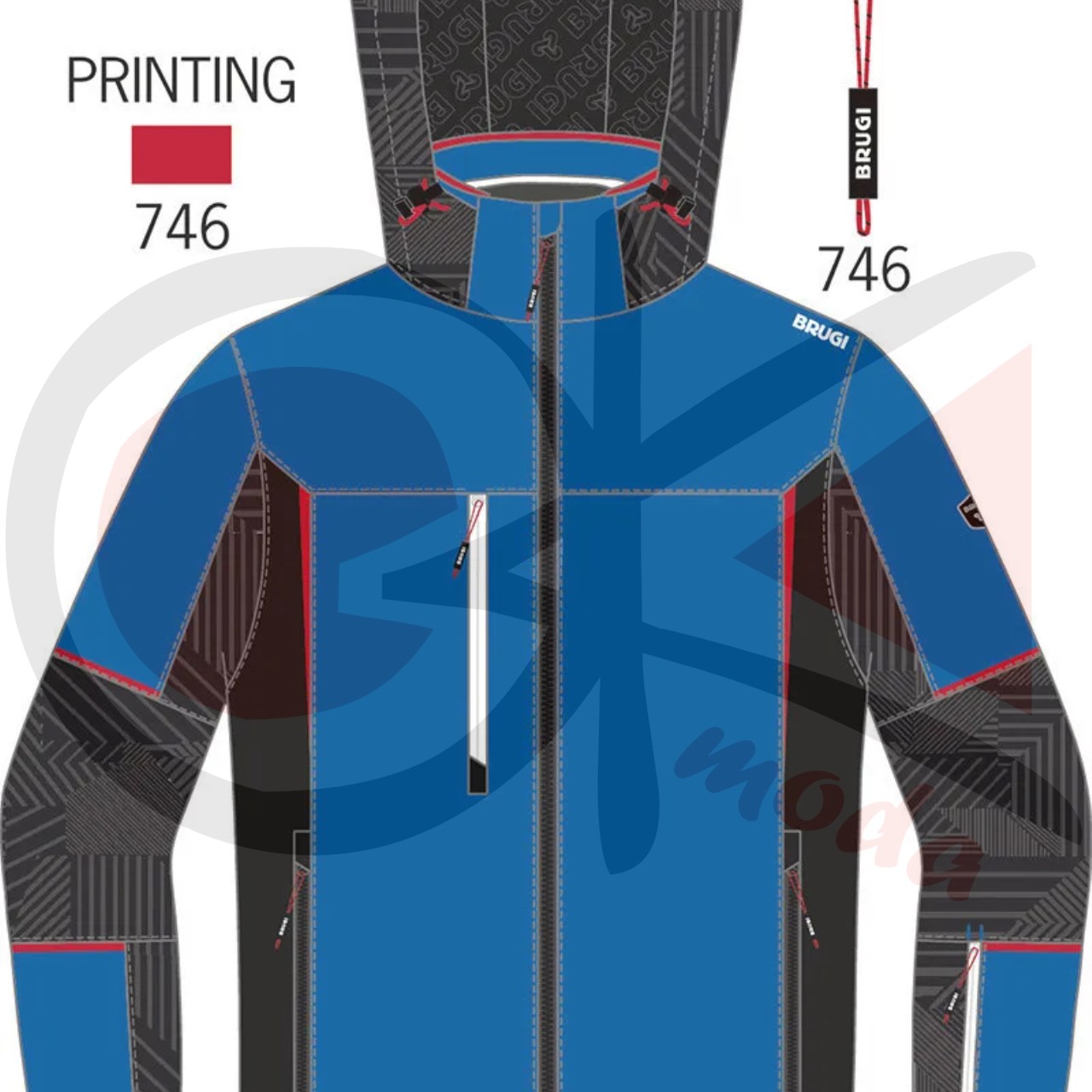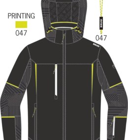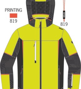 Giacca sci realizzata in tessuto elasticizzato e traspirante, con inserti stampati a caldo, cuciture principali nastrate, chiusura frontale con cerniera, cappuccio staccabile con cerniera e coulisse di regolazione, interno schiena centrale in tessuto elastico per agevolare il movimento, una tasca sul carre' parte destra, due tasche basse, taschino porta skipass manica sinistra,fondo maniche con alamaro e polso interno elasticizzato,tasca interna parte sinistra con cerniera, gonnellina interna antineve,fondo dietro dritto e regolabile con coulisse.